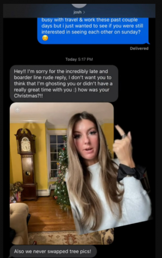 Josh, who finally replied back on Christmas Day, asked her how her Christmas was, to which Nik replied:
