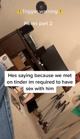 She got some of it on camera. TikTok starts with him explaining dating, mentioning getting to know someone better over time. He doesn’t think you can get to know someone slowly over time if you match on Tinder.