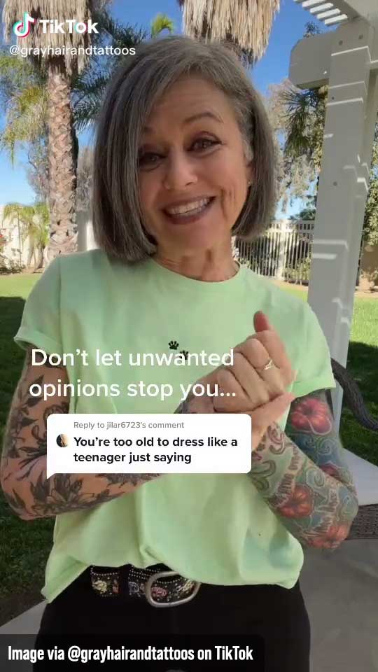 This story is about how she responded to all the negativity from people who said she was too old to dress like a teenager.