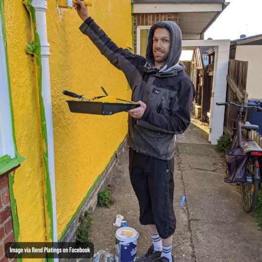 Michael & Rend Platings are from Cambridge, UK. They decided to speak up and show support to Ukraine in more ways than one – by painting their house yellow and blue.