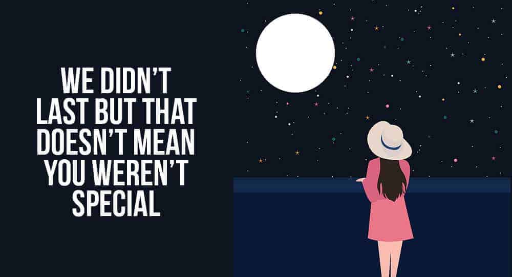 Just because you and I didn’t end up lasting, I don’t want you to think that that means I saw you as someone who was insignificant. I don’t want to downplay the importance of the role that you played on my life. I don’t want you to falsely believe that you weren’t a person of worth to me. You meant so much to me. And in fact, you still do. It’s just that we can be what we really need to be for one another. And that’s okay.