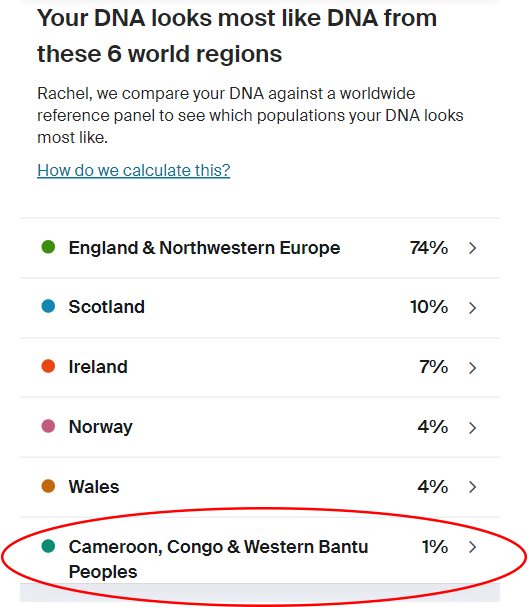 So, Rachel took matters into her own hands and shared a photo of her DNA results, revealing that she is 1% descended from Cameroon, Congo, and Western Bantu peoples.