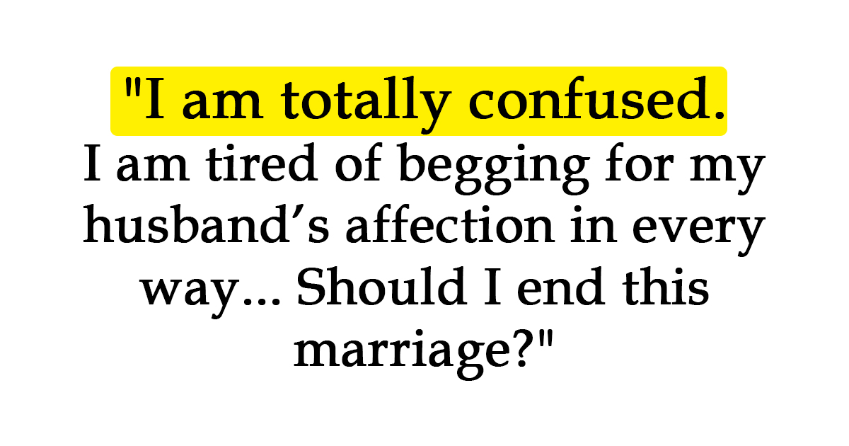 “I am tired of begging for my husband’s affection in every way. The lack of affection has created issues in our relationship and I don’t know how to deal with it.”