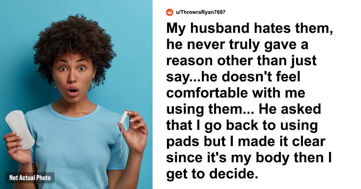 “So here’s a thing, I used to use pads for my periods but recently was able to start using tampons (I have medical problems) in comparison, Tampons work 10x better for me, especially when I’m outside…say like at work or traveling. My husband Ryan hates them, he never truly gave a reason other than just say…he doesn’t feel comfortable with me using them. I didn’t think it was a big deal at first since he said he hates a lot of stuff that I do but ‘puts up’ with it anyway except for this. He asked that I go back to using pads but I made it clear since it’s my body then I get to decide.”