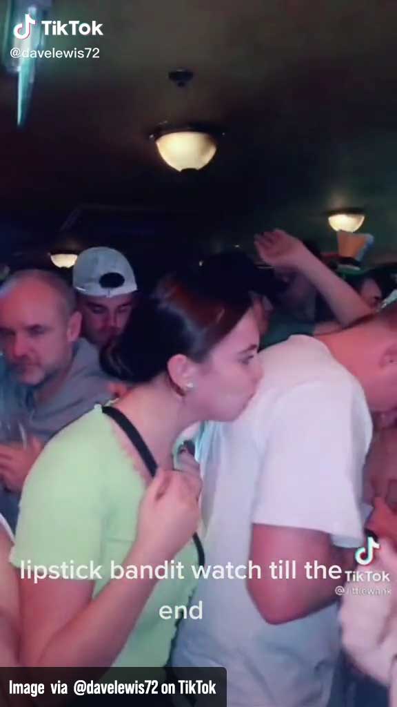 While this may seem like a harmless “joke” to this woman, it’s not a good look for all of the men who have to go back home and explain the lipstick kiss marks to their partners – that’s where a lot of relationship problems and trust issues can sprout from.
