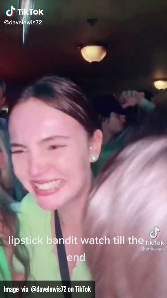 This potentially relationship-ruining story comes from Sydney, Australia. A partygoing woman was captured on video by her friend, leaving lipstick marks on the backs of unsuspecting men’s t-shirts at a party on St. Patrick’s Day. She specifically chose men wearing white t-shirts for her “joke.”