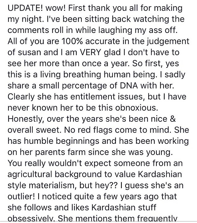 “We were f***ing livid,” Susan wrote. “How was this supposed to happen without a little help from our friends. To make matters worse, my ex’s family took back their offer.”