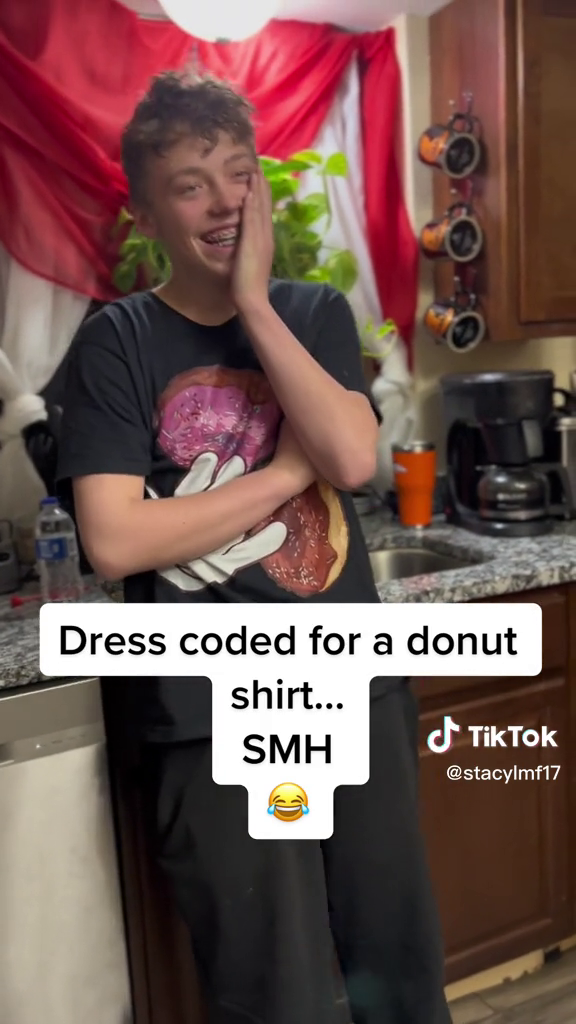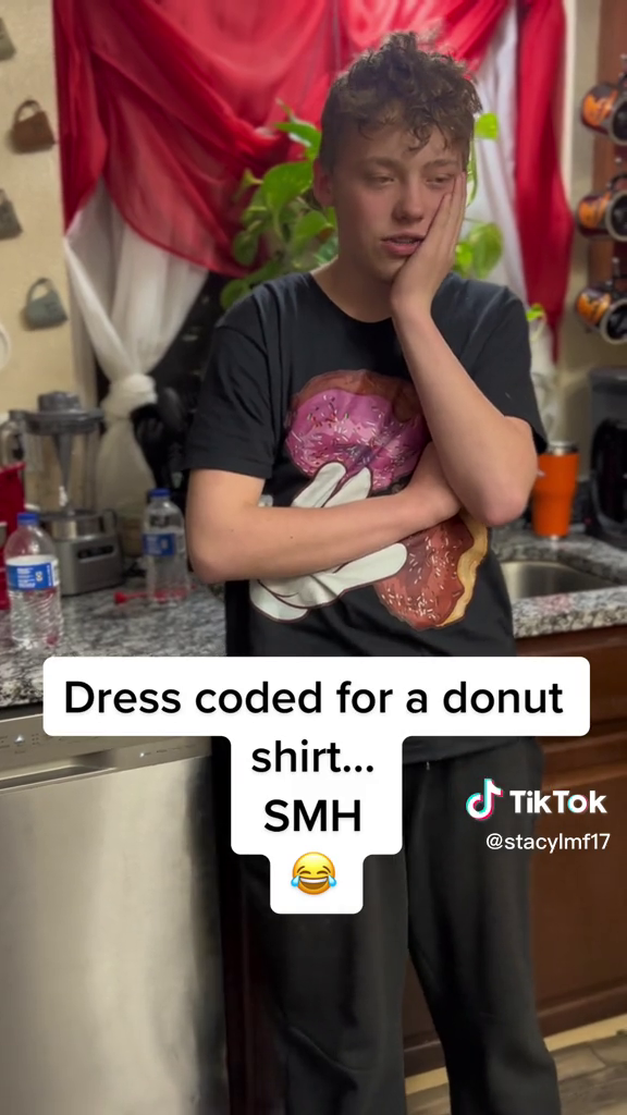 TikTok user Stacy shared a video of his son, who explained how he ended up in the dean’s office for wearing an inappropriate t-shirt to school.