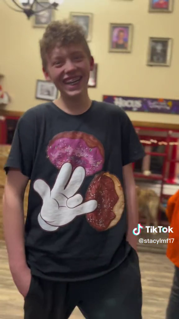 “So I went to school with my donut shirt that you got me for Christmas,” he said. “When I was sitting in my dean’s office, she barely saw my shirt and said, ‘oh I like your shirt.’ So then I brought it up and said people are looking at my shirt, like giving all the weird looks and everything.”