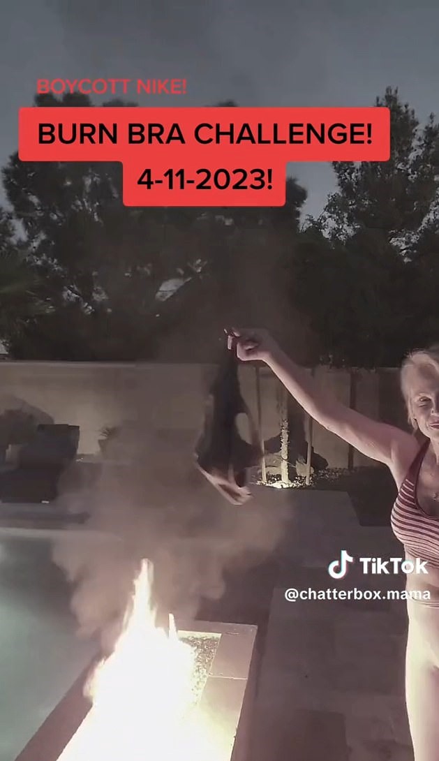 TikTok user @chatterbox.mama burnt her Nike sports bra launching the ‘Burn Bra Challenge’ on the platform as a reaction to Nike’s partnership with Dylan Mulvaney.