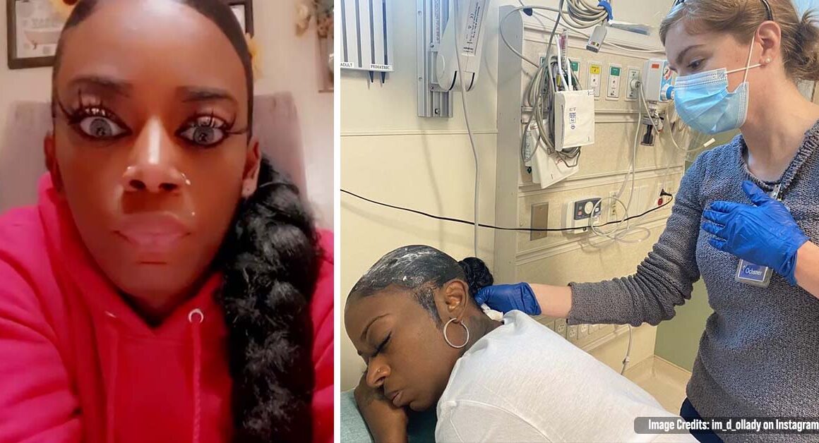 After weeks of struggle, Tessica went to the hospital so that doctors would remove the glue from her hair using acetone, but the chemical burnt her scalp, leaving her in pain and agony.