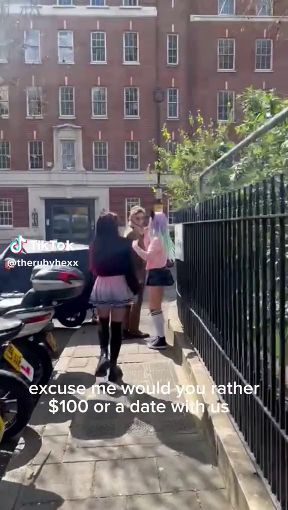 Digital creator Ruby Hexx and her friend, Ivy Fox, were filming a TikTok video in which they had to ask random people on the streets if they would like to date them or have $100 instead.
